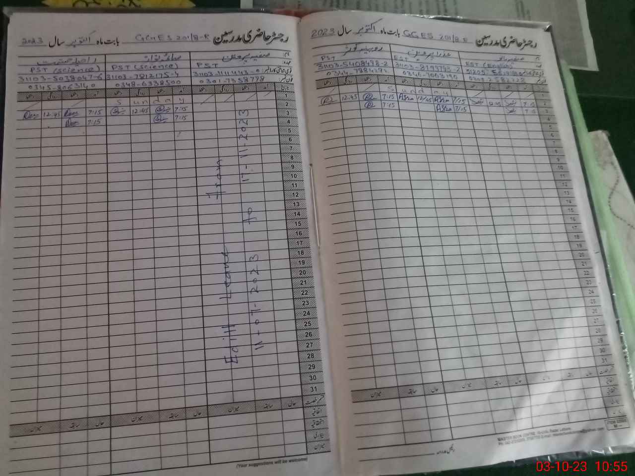 | Name: SA**** AL**** Designation: (School Headmaster's/Headmistress's) S.S.T.(Arts) Phone/Cell Number: 03**** |