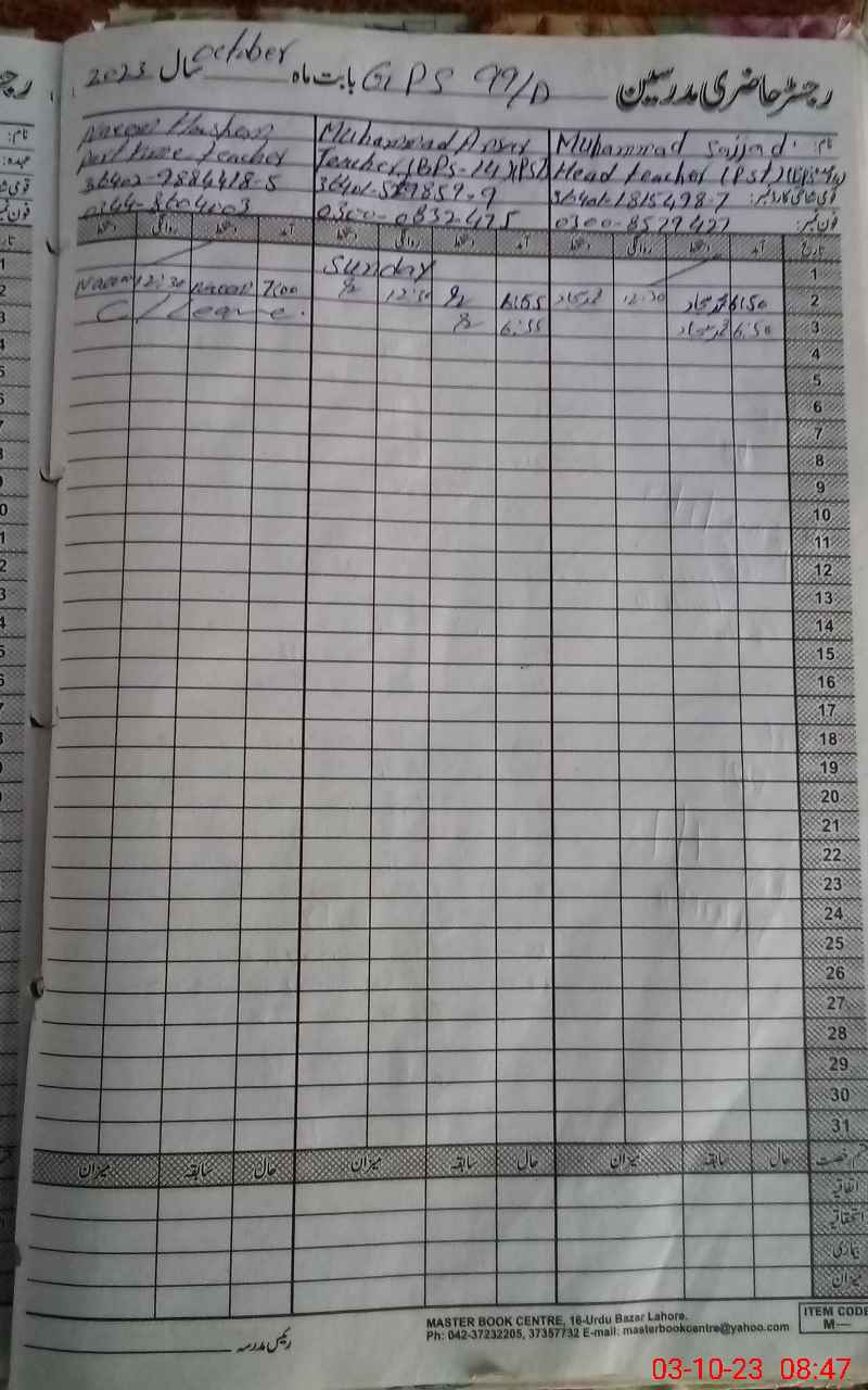 | Name: MU**** SA**** Designation: (School Headmaster's/Headmistress's) PST Phone/Cell Number: 03**** |