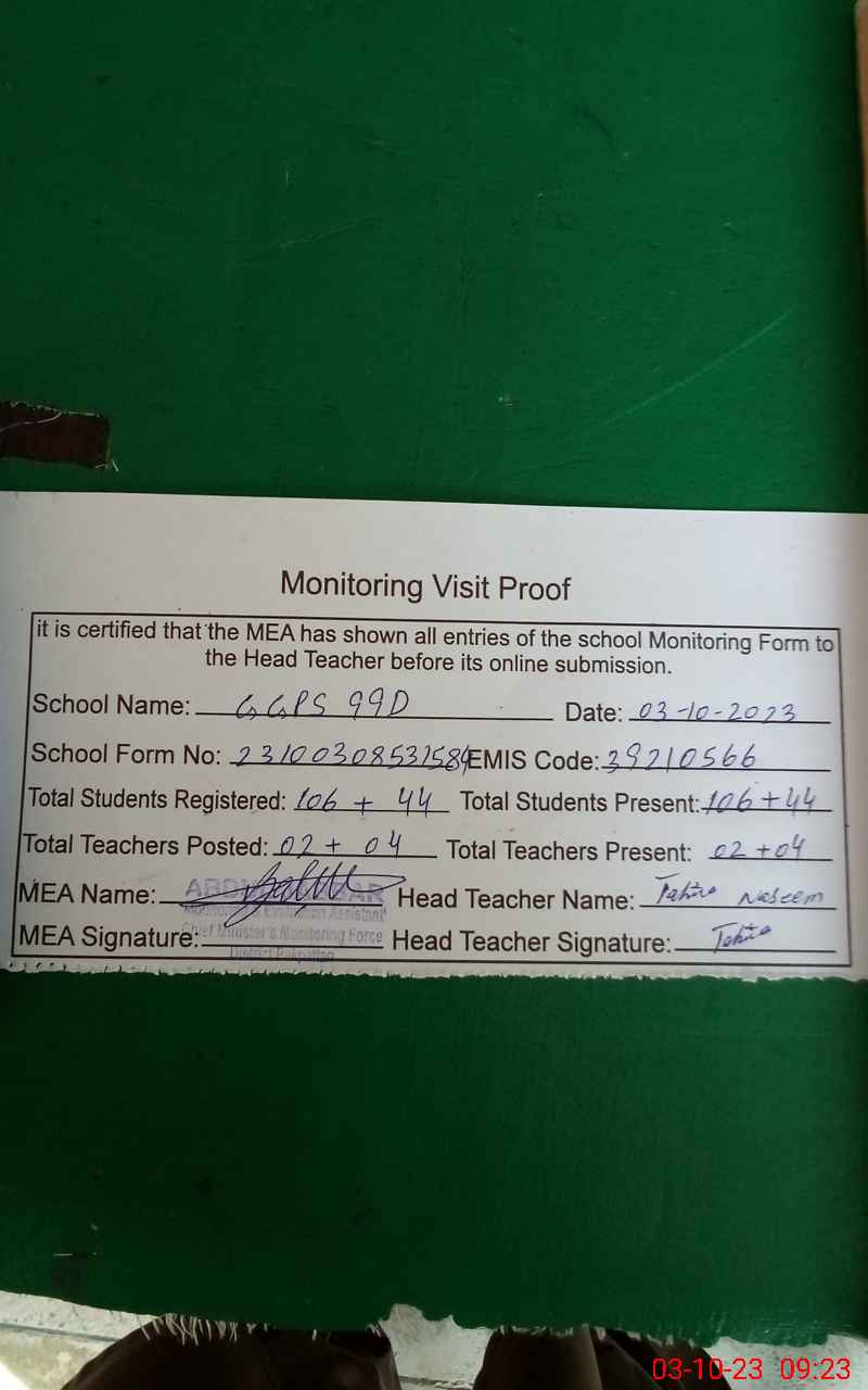 | EMIS Code: 39210566 | Name of School: GGPS 99/D | |||