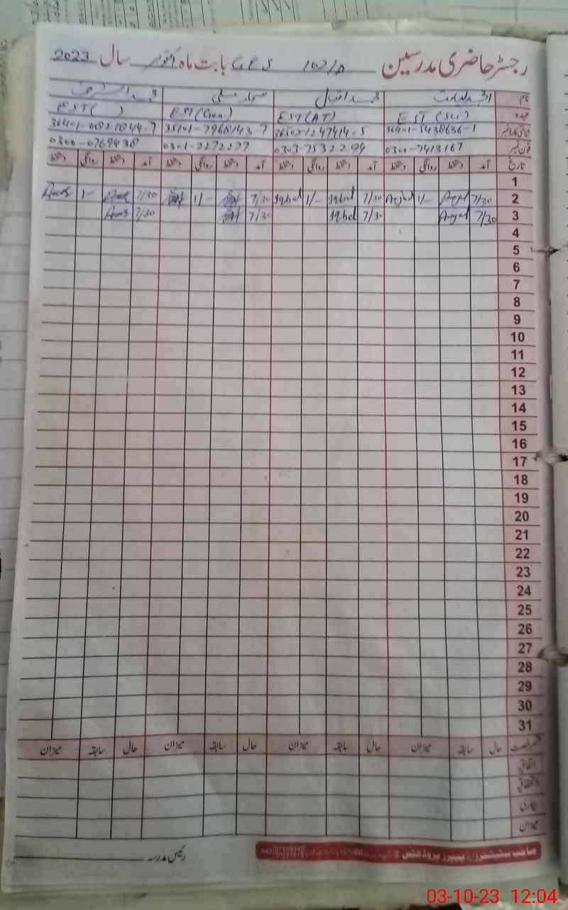 | Name: Mu**** As**** Designation: (School Headmaster's/Headmistress's) EST Phone/Cell Number: 03**** |