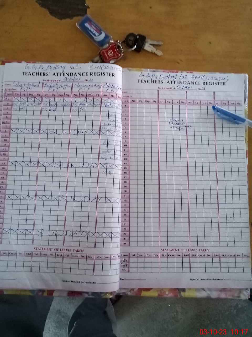 | Leave | Duty | Absent | Maternity | Medical | Ex- Pak |
