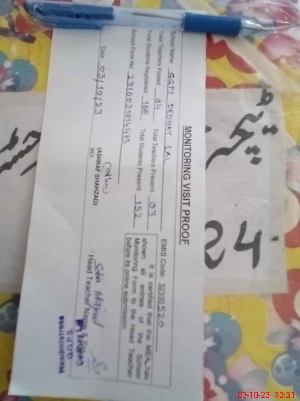 | EMIS Code: 32330520 | Name of School: GGPS DEDHAY LAL | |||