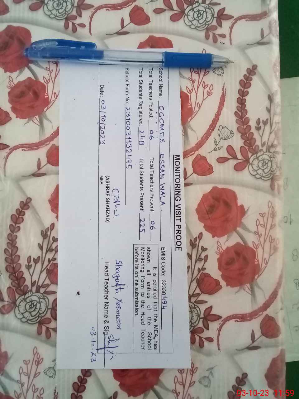 | EMIS Code: 32330494 | Name of School: GGCMES ESSAN WALI | |||