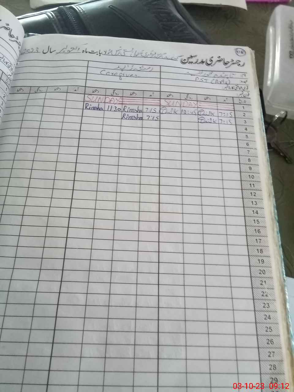 | CNIC | Full Name | Designation | R/C | Absence During Last Calender Month |