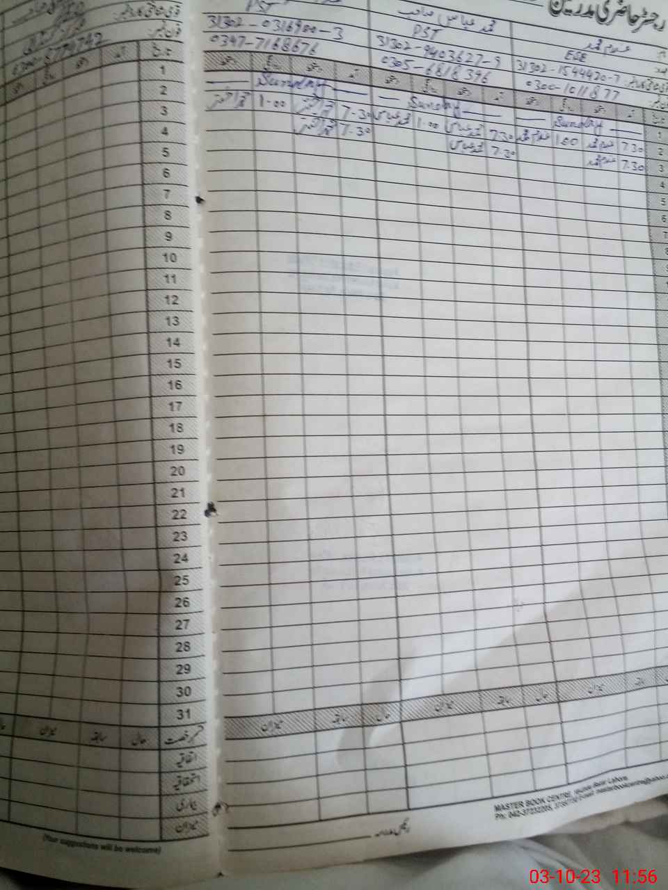 | CNIC | Full Name | Designation | R/C | Absence During Last Calender Month |