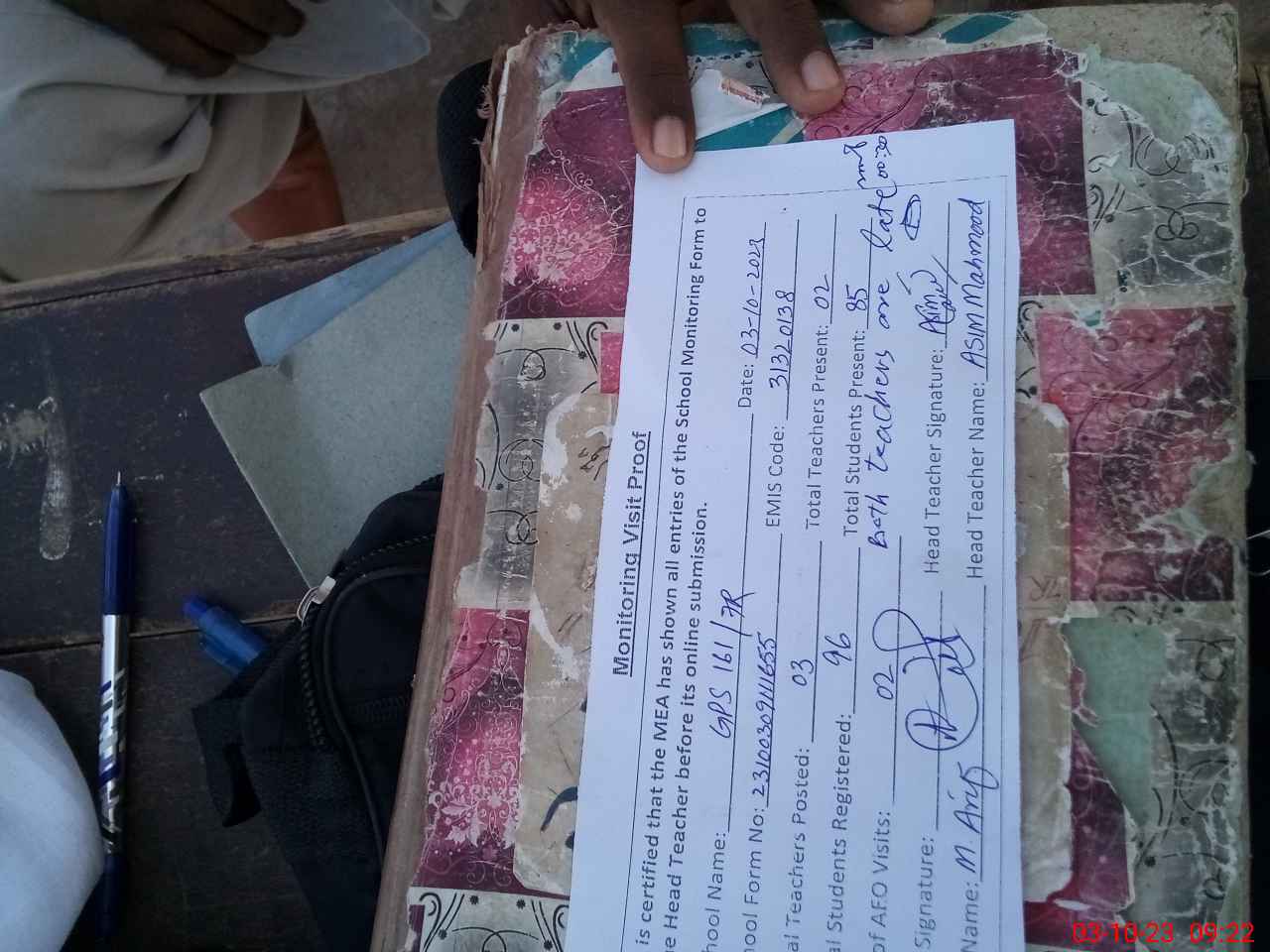 | Attendance Register | Head Teacher | MEA with School | Visit Proof |