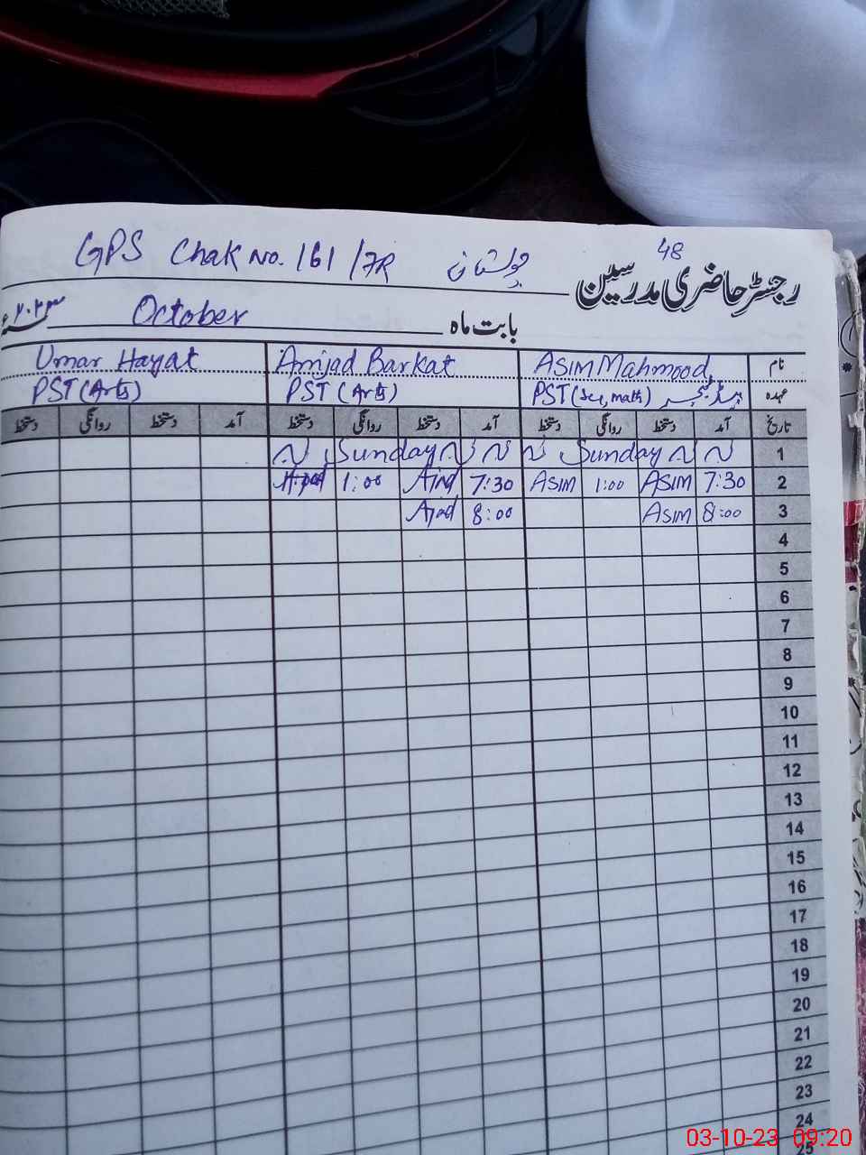| Name: Um**** Ha**** Designation: (School Headmaster's/Headmistress's) PST Phone/Cell Number: 03**** |
