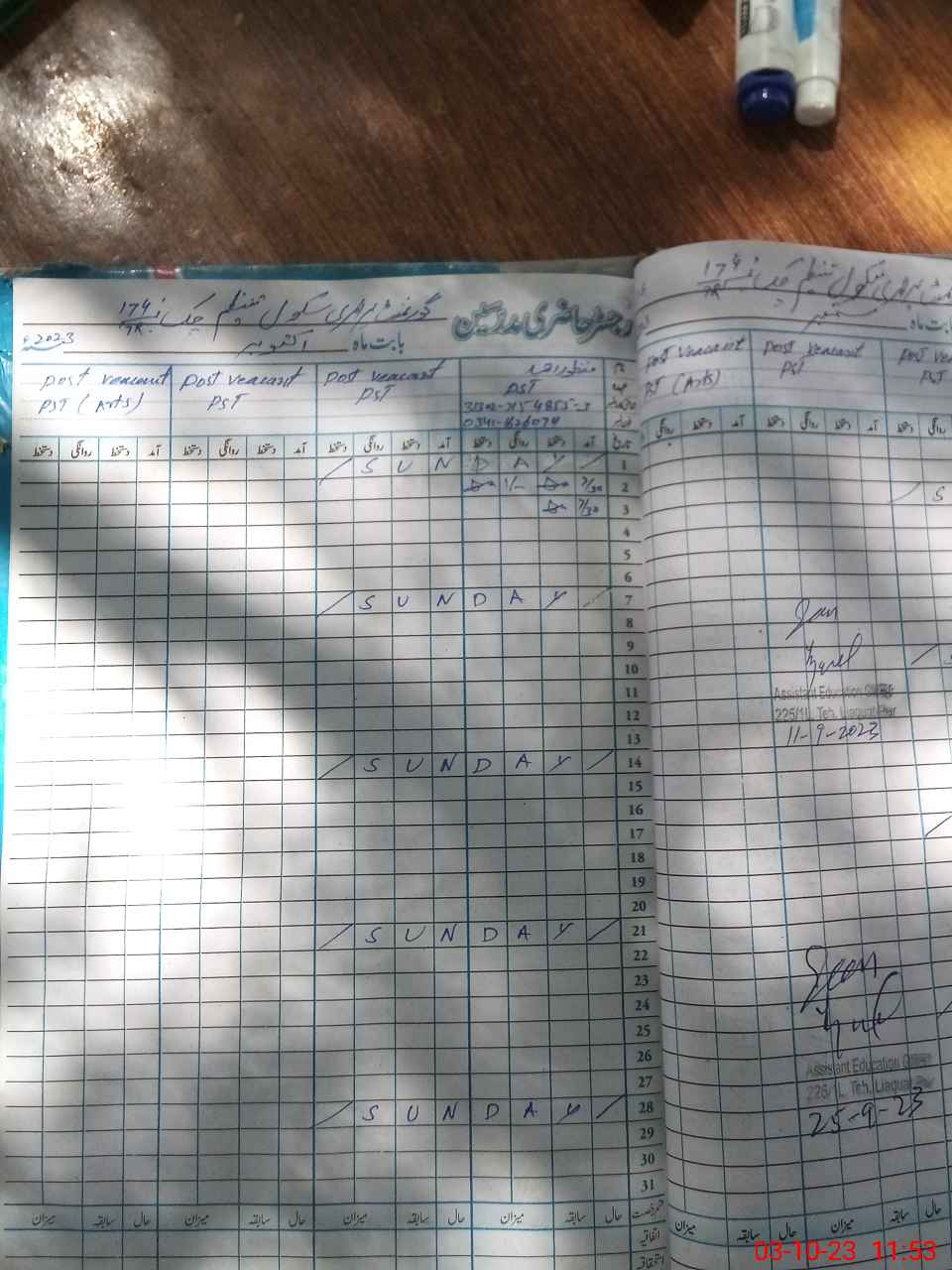 | Name: MA**** AH**** Designation: (School Headmaster's/Headmistress's) PST Phone/Cell Number: 03**** |