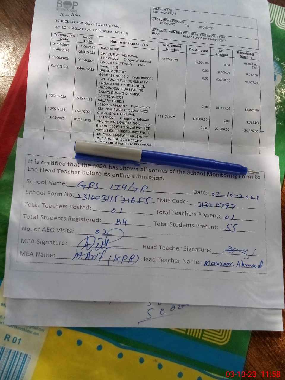| EMIS Code: 31320797 | Name of School: GPS TANZEEM CHAK NO. 174/7-R | |||