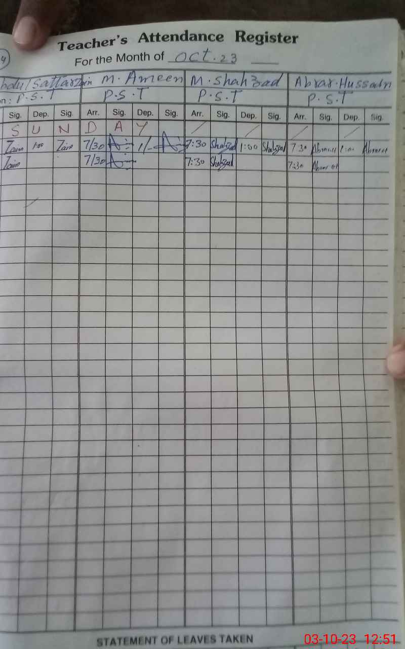 | Name: Ab**** Hu**** Designation: (School Headmaster's/Headmistress's) ESE (SCIENCE MATH ) Phone/Cell Number: 03**** |
