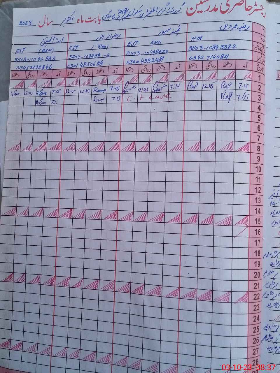 | Name: RA**** UM**** DI**** Designation: (School Headmaster's/Headmistress's) S.S.T.(G) Phone/Cell Number: 03**** |