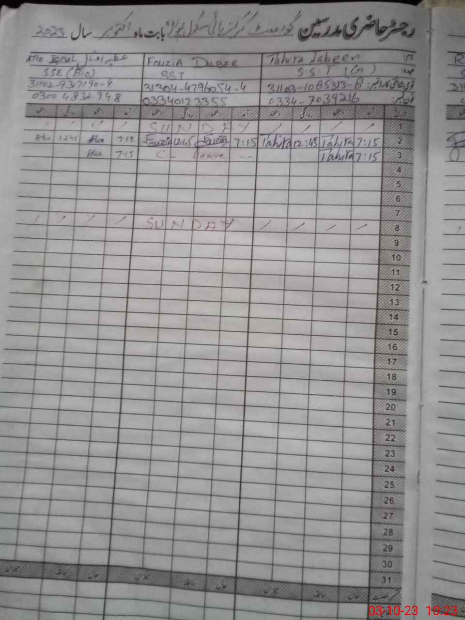 | CNIC | Full Name | Designation | R/C | Absence During Last Calender Month |