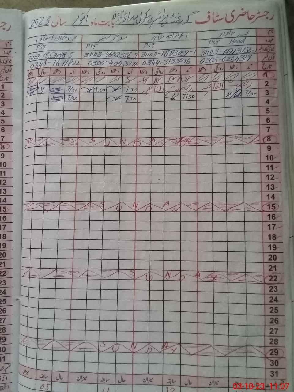 | Name: Mu**** Ja**** Designation: (School Headmaster's/Headmistress's) PST Phone/Cell Number: 03**** |
