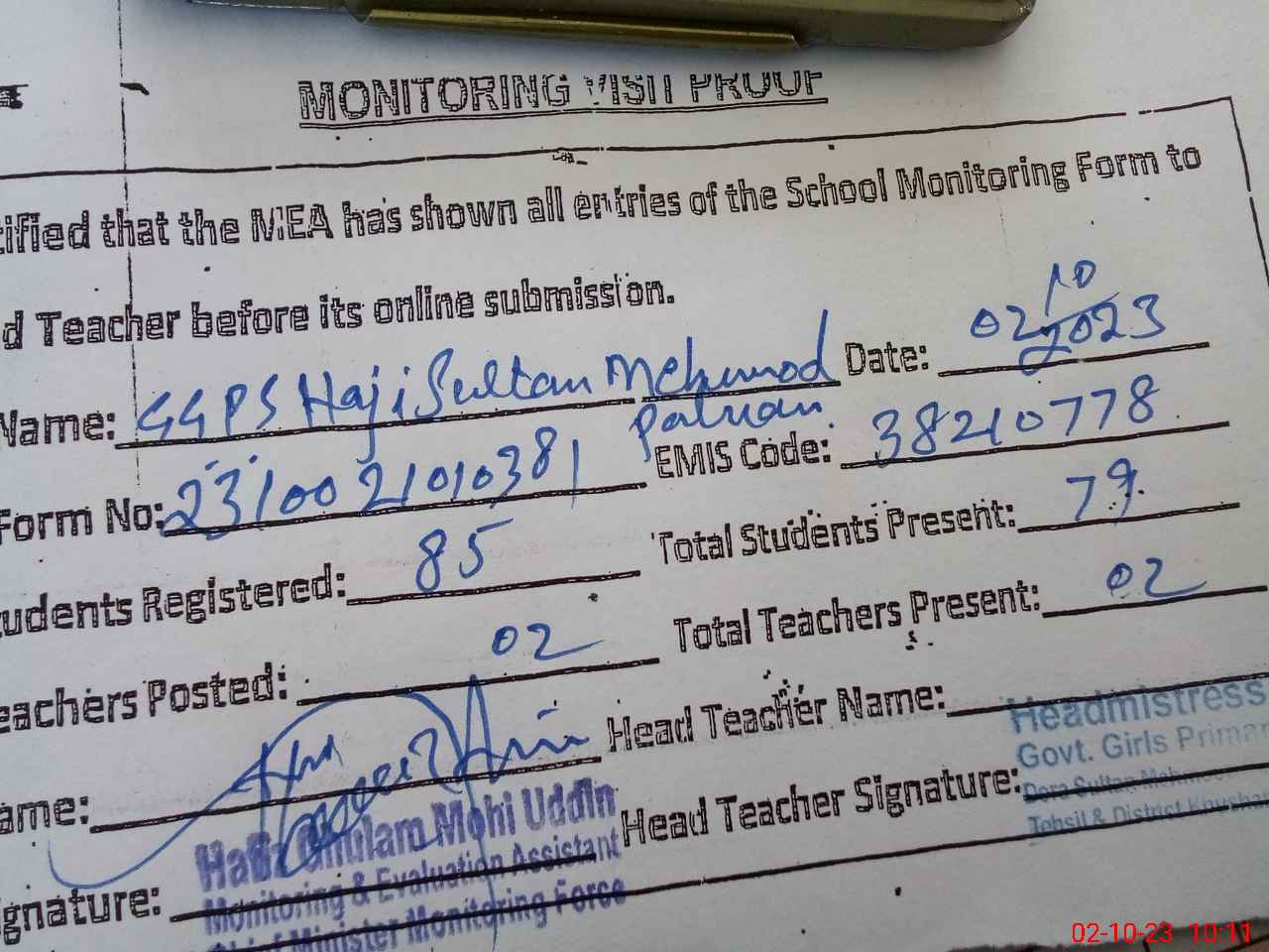 | EMIS Code: 38210778 | Name of School: GGPS HAJI SULTAN MEHMOOD PALUWAN | |||