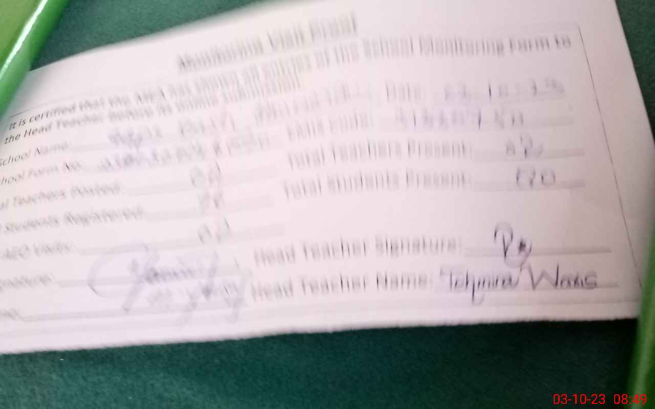 | Name: Te**** Wa**** Designation: (School Headmaster's/Headmistress's) Pst Phone/Cell Number: 03**** |