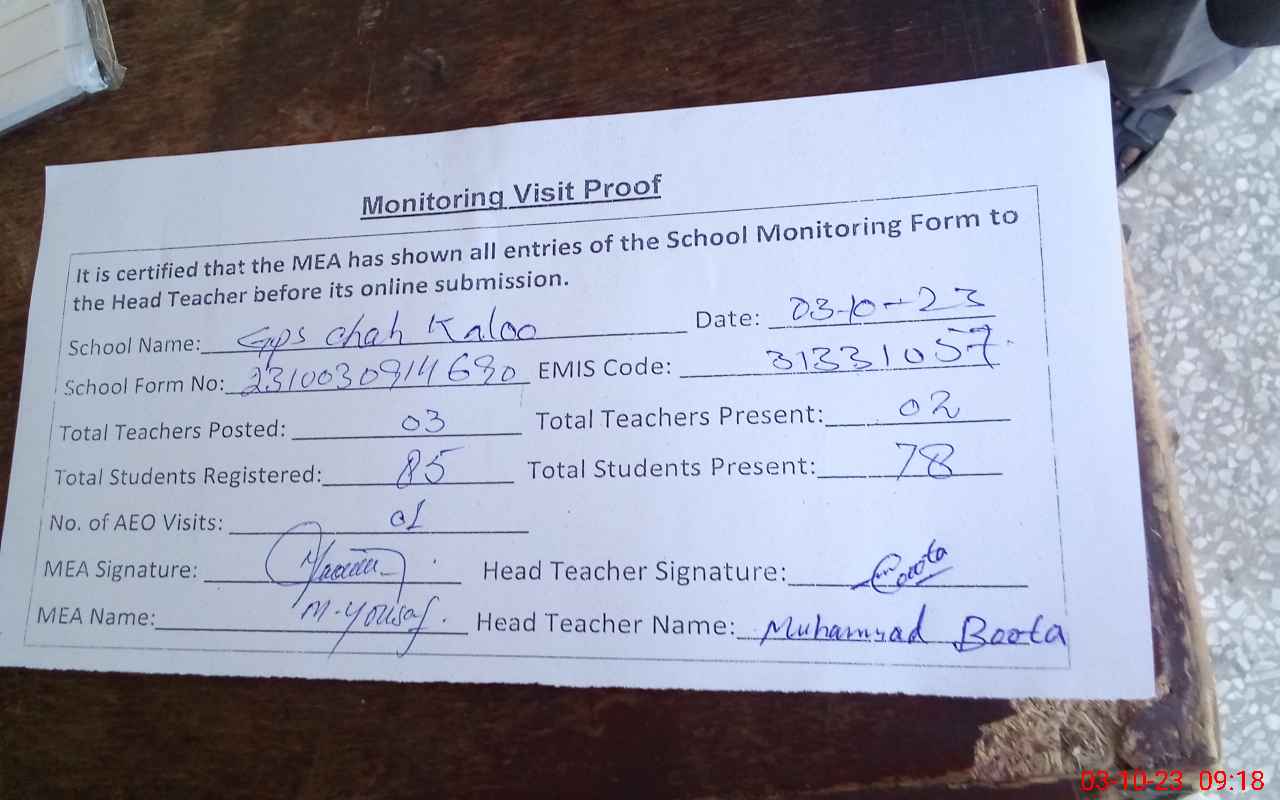 | EMIS Code: 31331057 | Name of School: GPS BASTI CHAH KALOO | |||