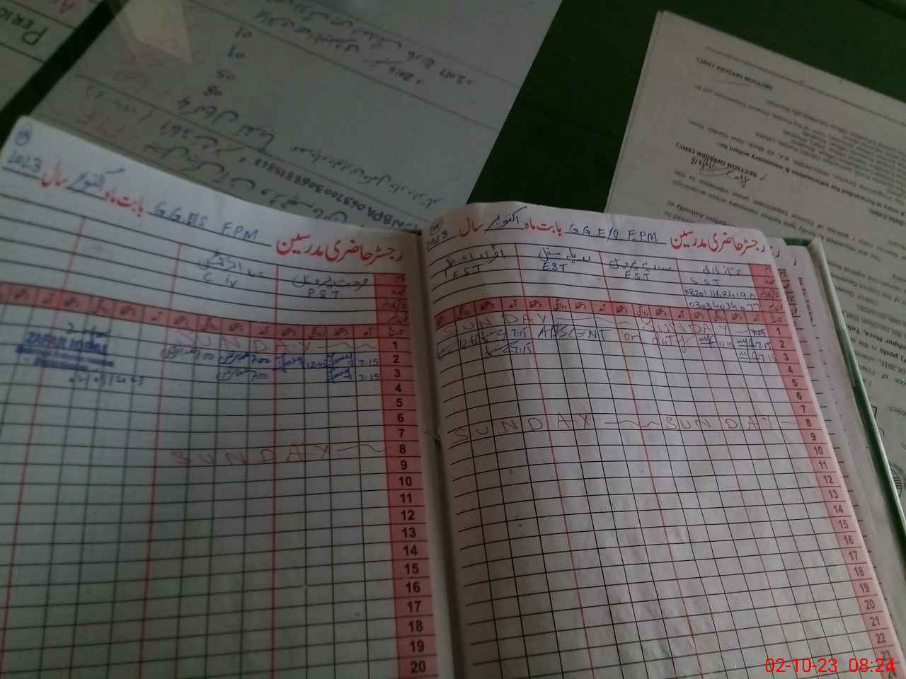 | CNIC | Full Name | Designation | R/C | Absence During Last Calender Month |
