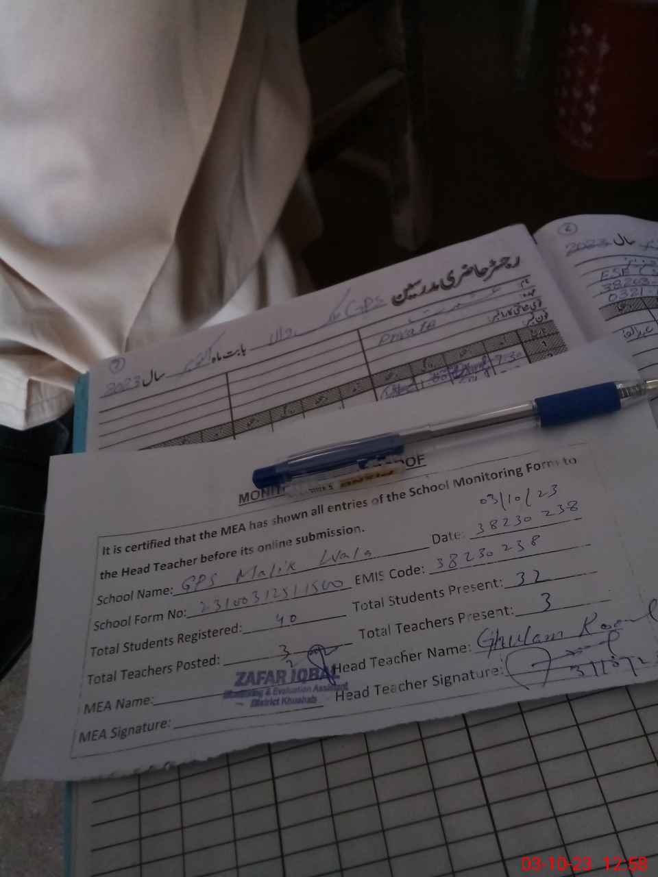 | EMIS Code: 38230238 | Name of School: GPS MALIK WALA | |||