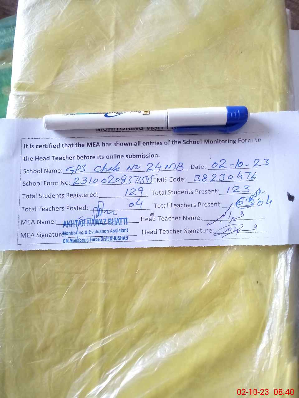 | EMIS Code: 38230476 | Name of School: GPS CHAK NO. 24 MB | |||