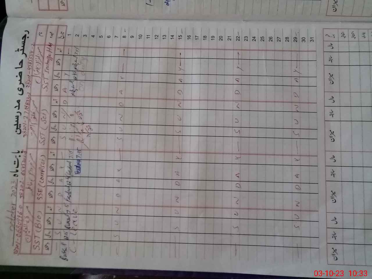 | Name: NA**** IQ**** Designation: (School Headmaster's/Headmistress's) S.S.T.(GEN) Phone/Cell Number: 03**** |