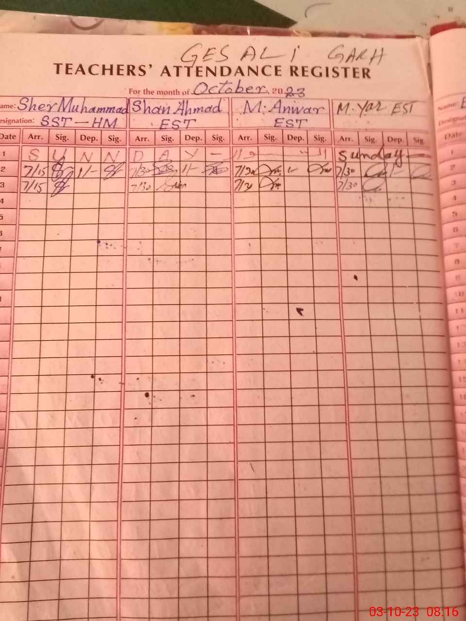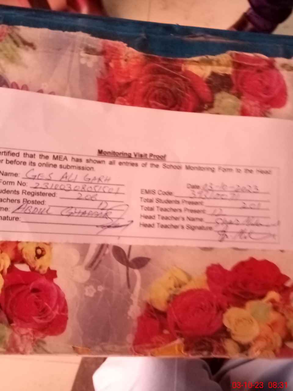 | EMIS Code: 39310071 | Name of School: GES ALI GARH | |||