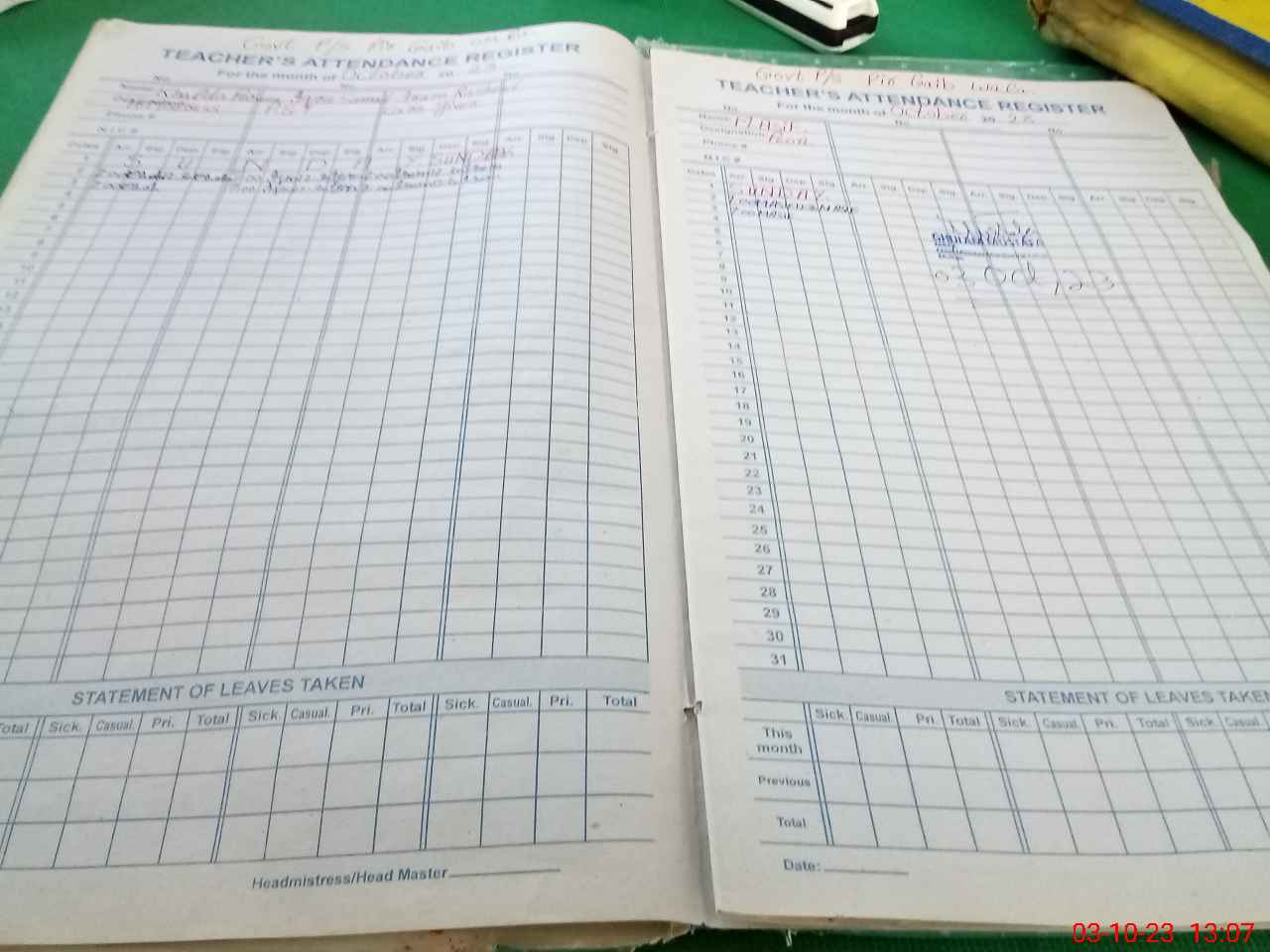 | Name: KH**** PE**** Designation: (School Headmaster's/Headmistress's) PST/PTC/JV Phone/Cell Number: 03**** |