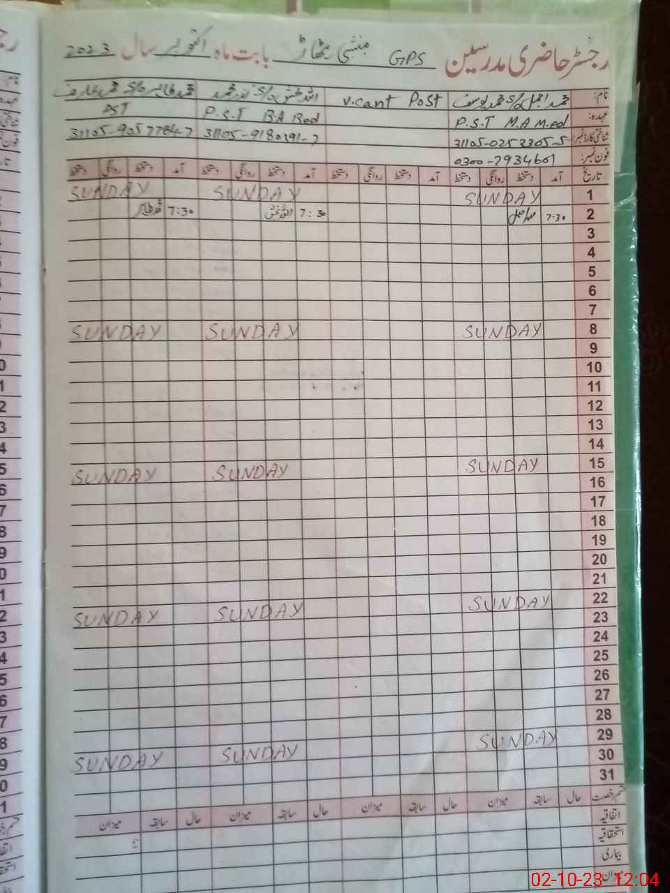 | Name: Mu**** Aj**** Designation: (School Headmaster's/Headmistress's) PST Phone/Cell Number: 03**** |