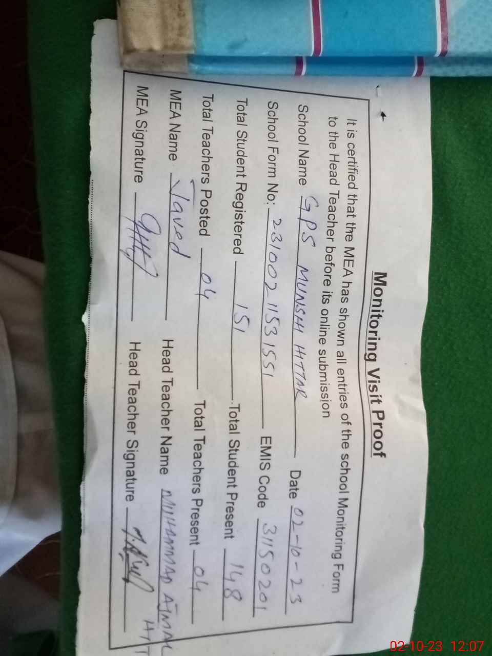 | EMIS Code: 31150201 | Name of School: GPS MUNSHI HITTAR | |||