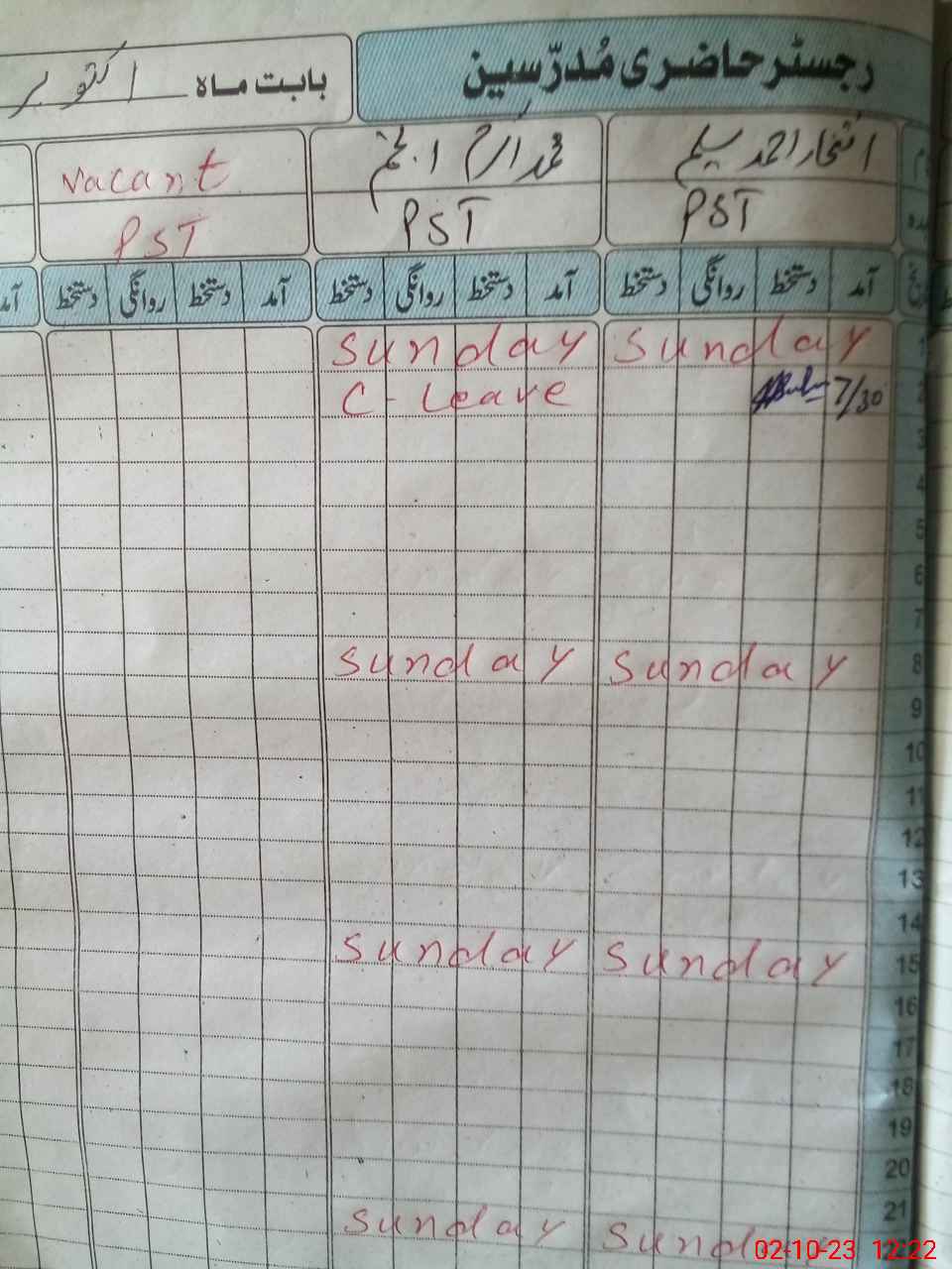 | Name: IF**** AH**** SA**** Designation: (School Headmaster's/Headmistress's) PST Phone/Cell Number: 03**** |