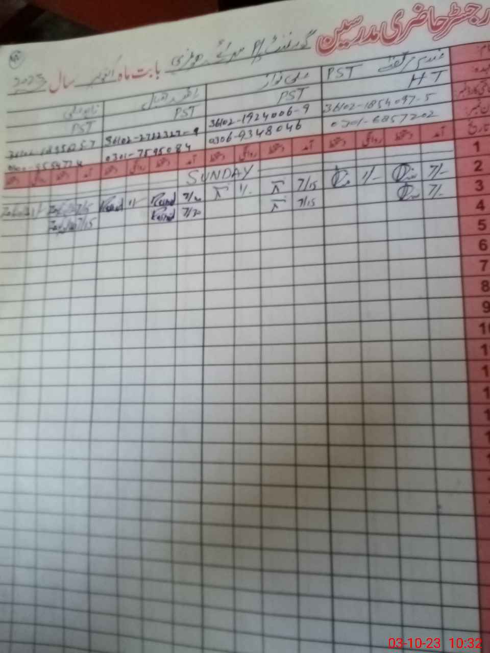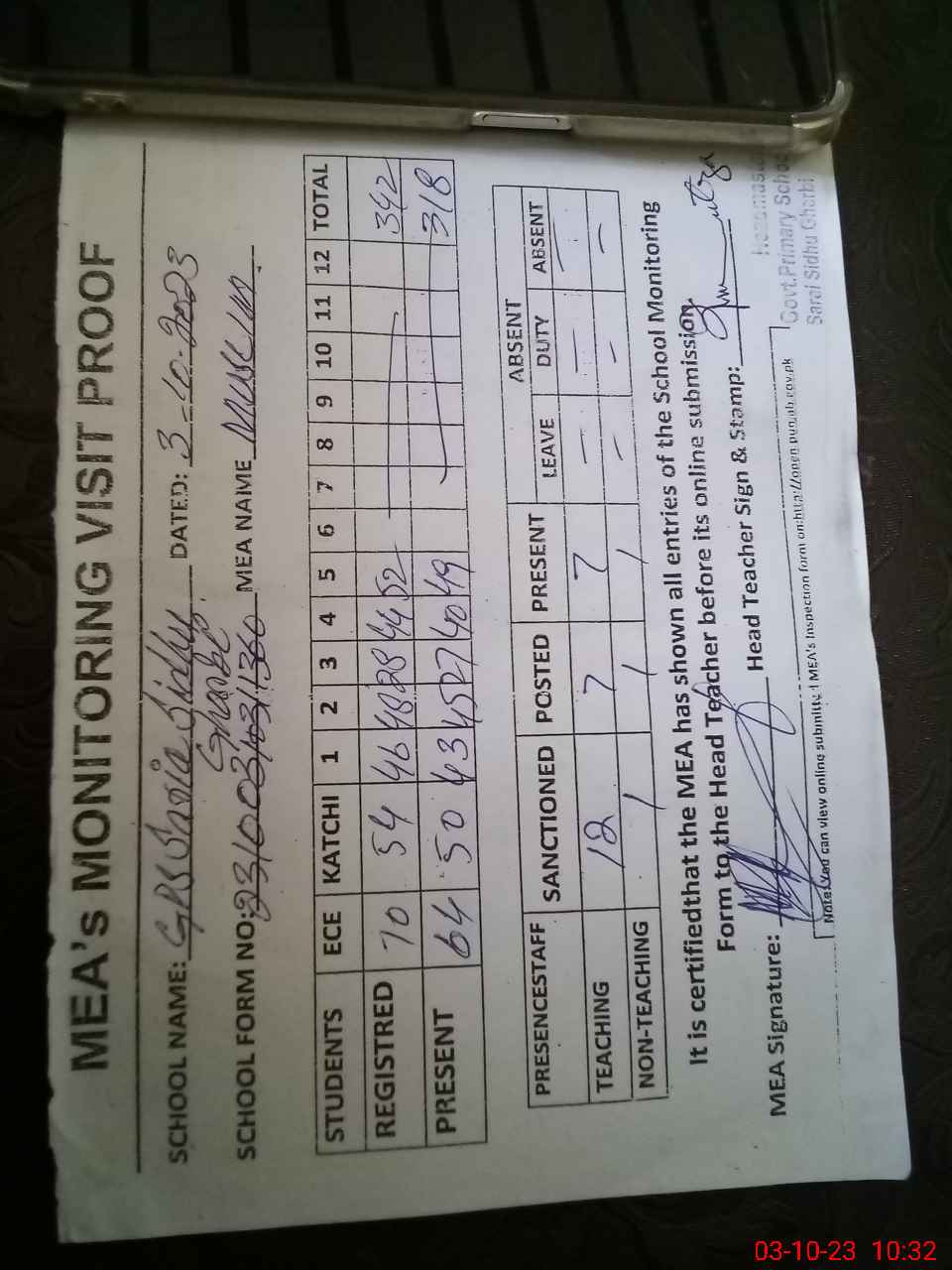 | Name: Gh**** Mu**** Designation: (School Headmaster's/Headmistress's) PTC/JV Phone/Cell Number: 03**** |