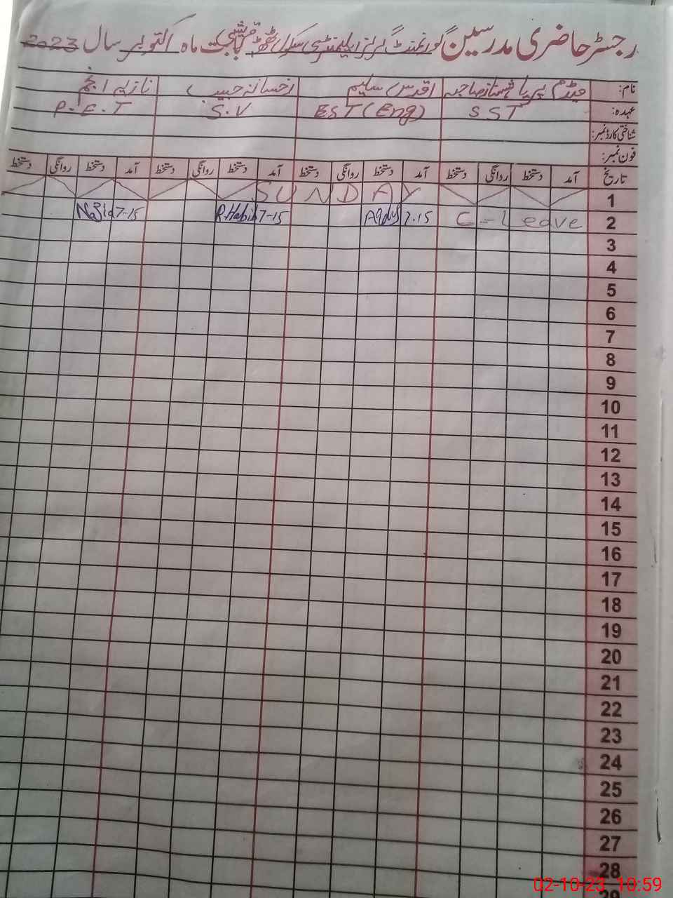 | Name: PR**** SH**** Designation: (School Headmaster's/Headmistress's) S.S.T.(GEN) Phone/Cell Number: 03**** |