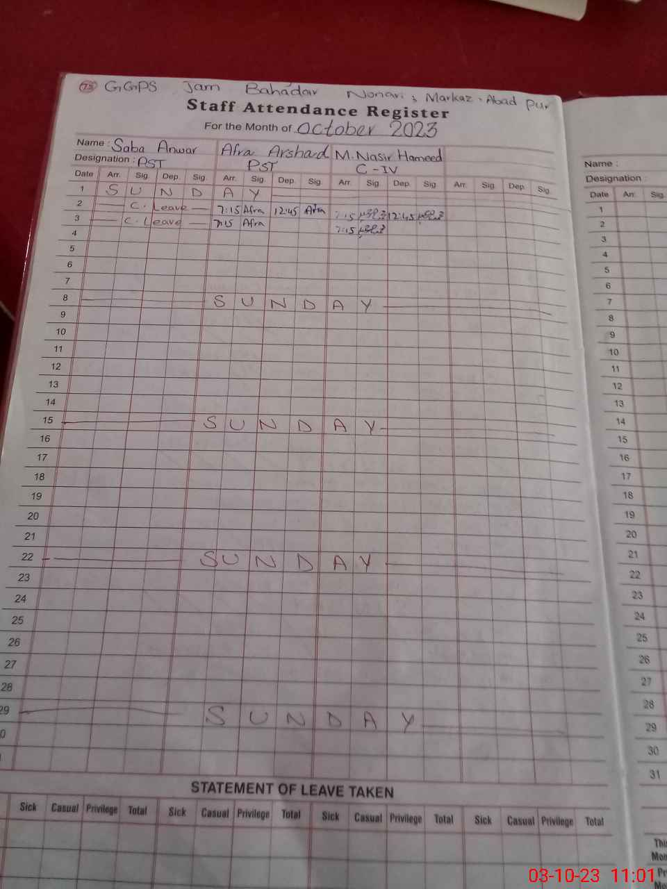 | Name: Sa**** An**** Designation: (School Headmaster's/Headmistress's) PST/PTC/JV Phone/Cell Number: 03**** |