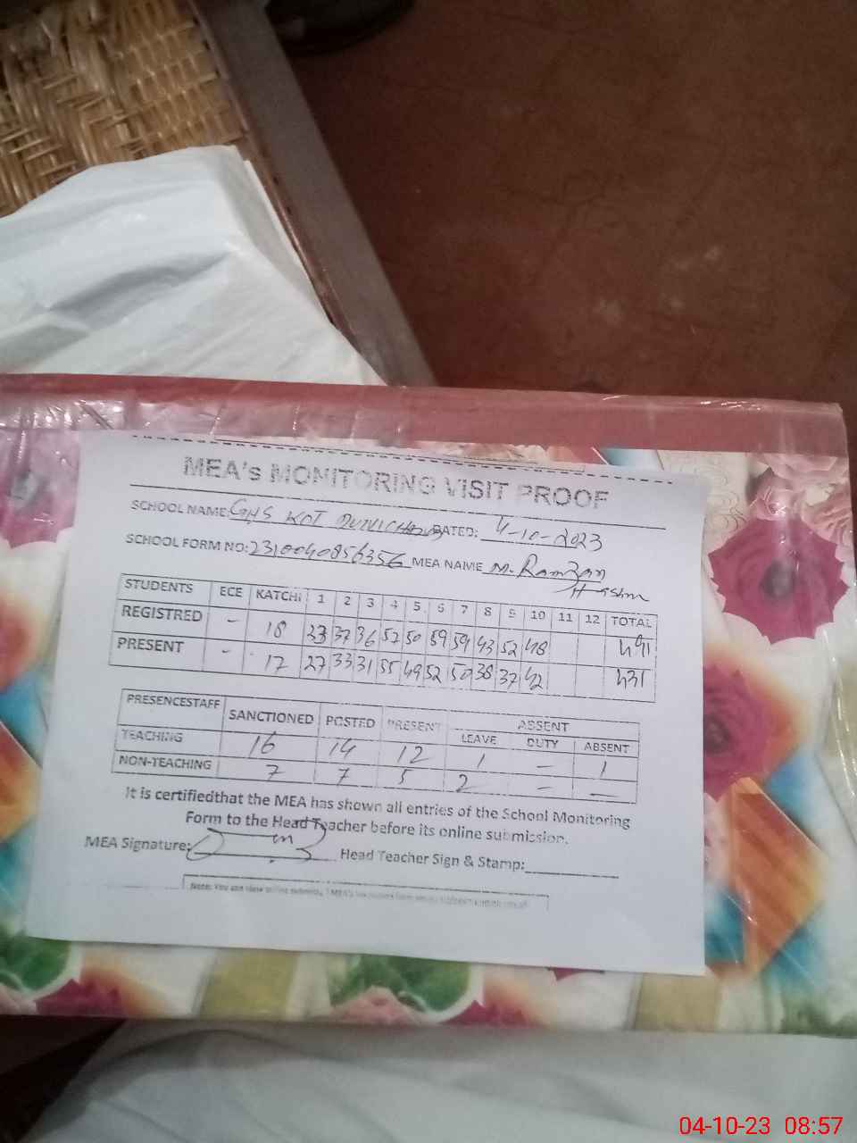 | EMIS Code: 36410024 | Name of School: GHS KOT DUNI CHAND, ABDUL HAKIM | |||