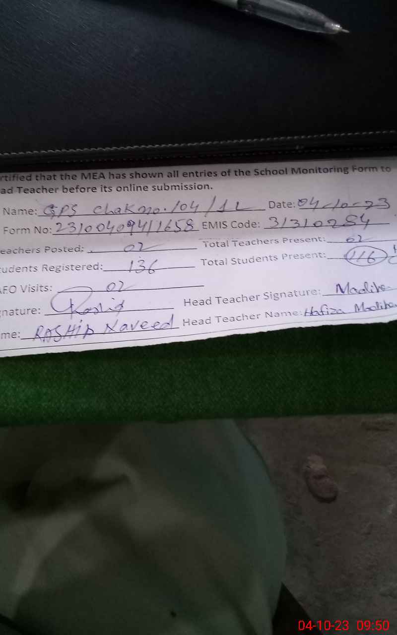 | EMIS Code: 31310284 | Name of School: GPS CHAK NO.104/1-L | |||