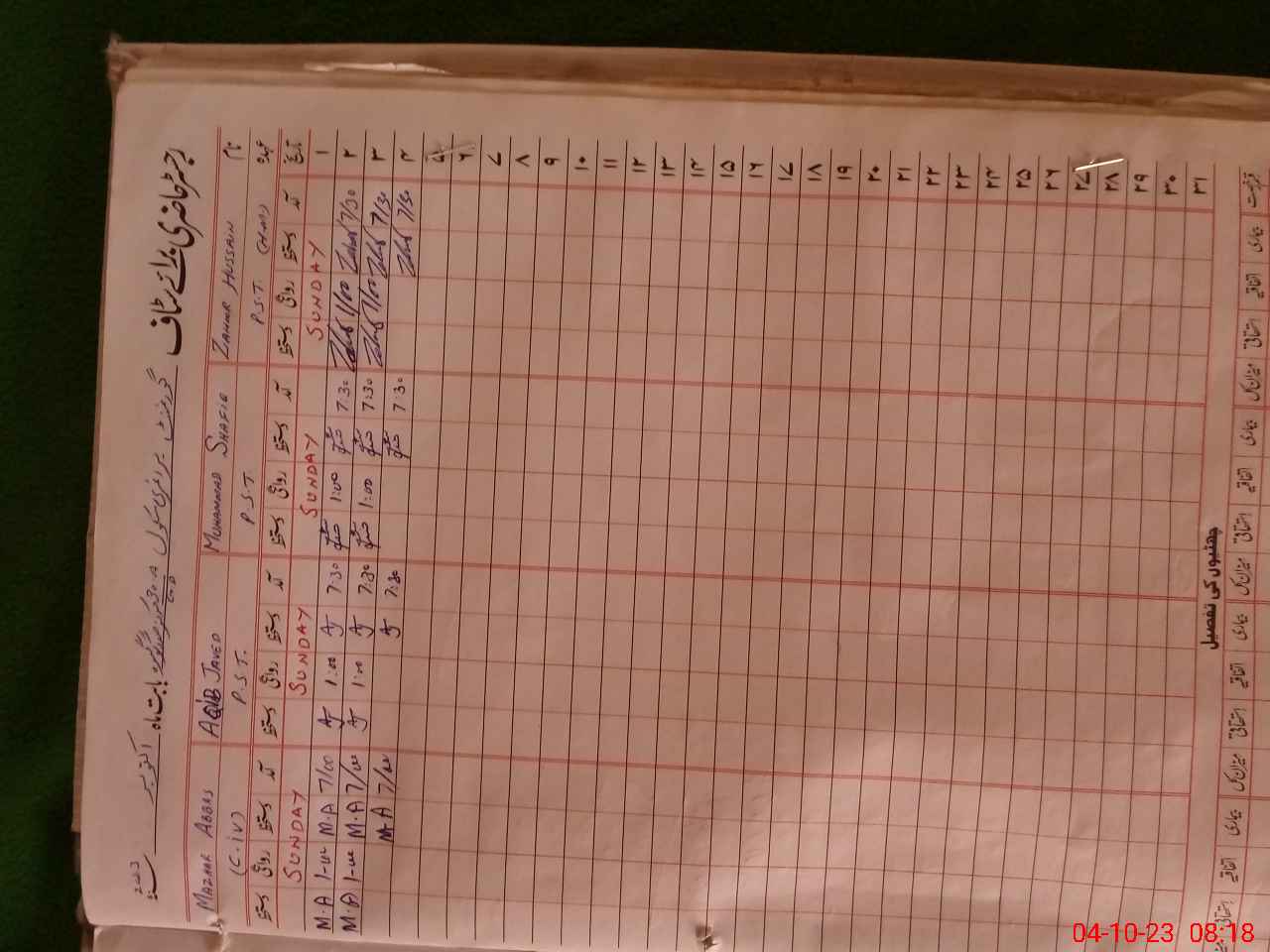 | CNIC | Full Name | Designation | R/C | Absence During Last Calender Month |