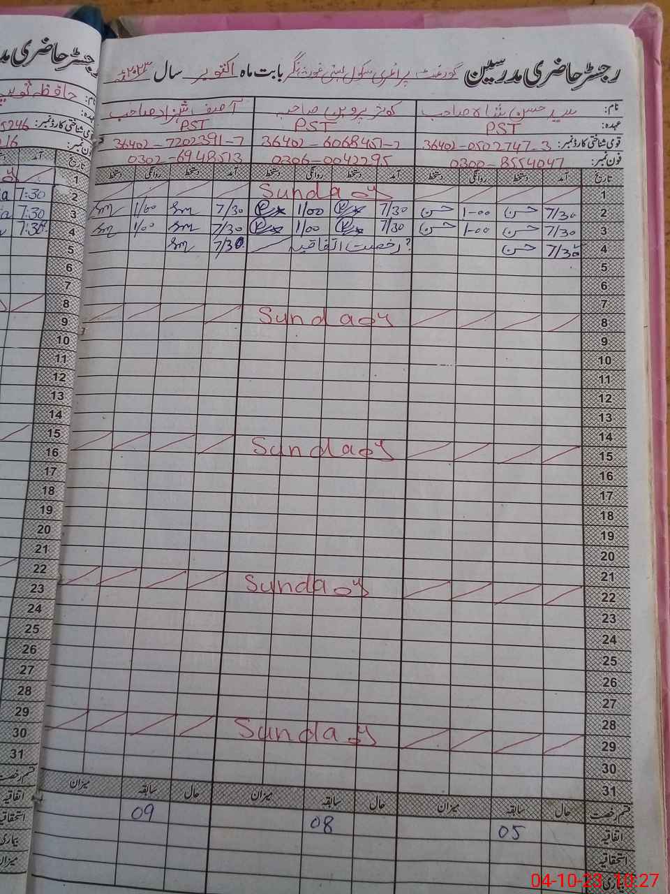 | Name: SY**** HA**** SH**** Designation: (School Headmaster's/Headmistress's) PST Phone/Cell Number: 03**** |