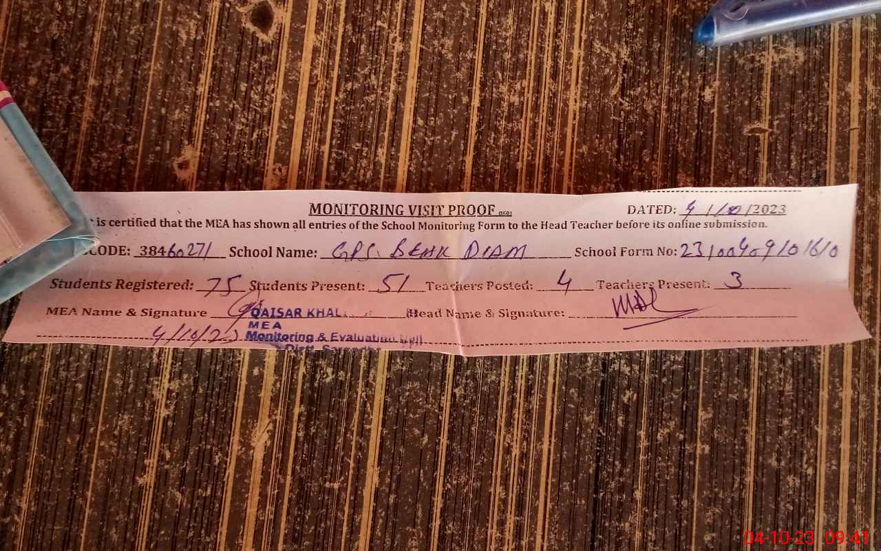 | EMIS Code: 38460271 | Name of School: GPS BEHAK DIAM | |||