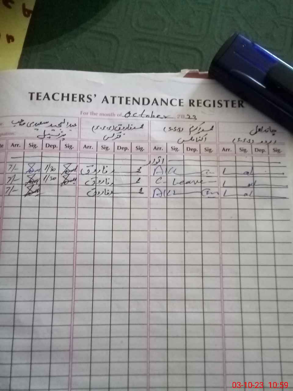 | CNIC | Full Name | Designation | R/C | Absence During Last Calender Month |