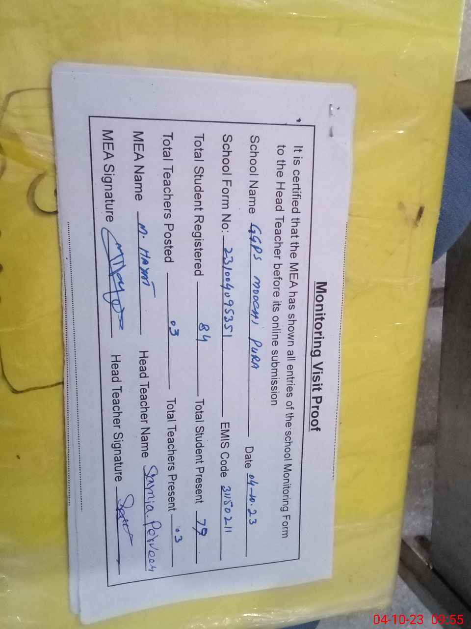 | EMIS Code: 31150211 | Name of School: GGPS MOCHI PURA | |||