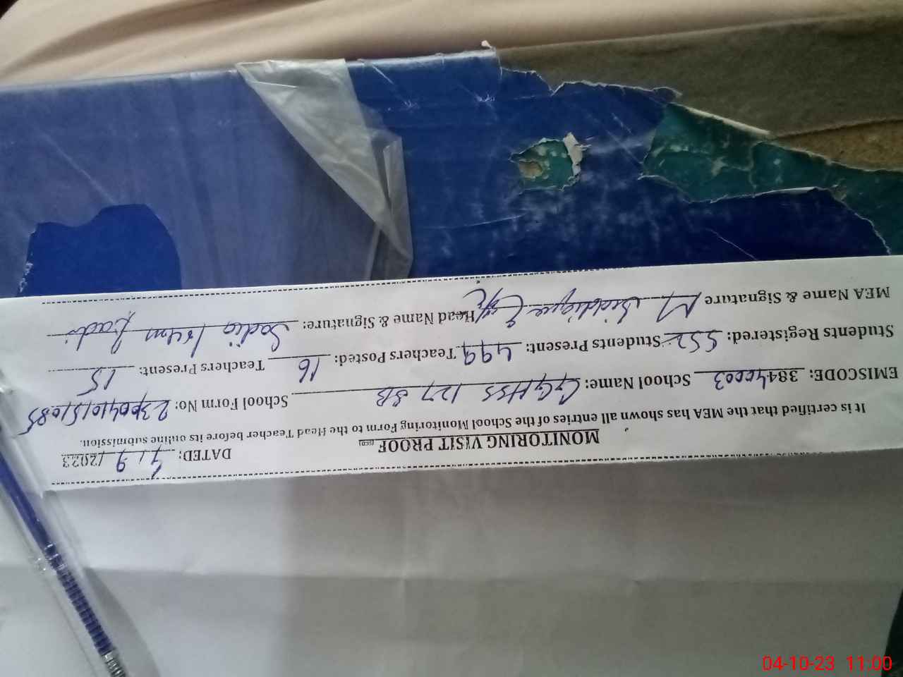 | Attendance Register | Head Teacher | MEA with School | Visit Proof |