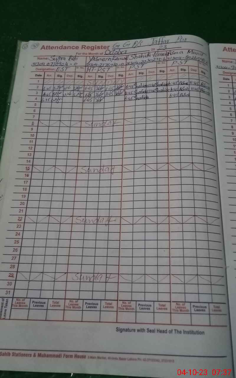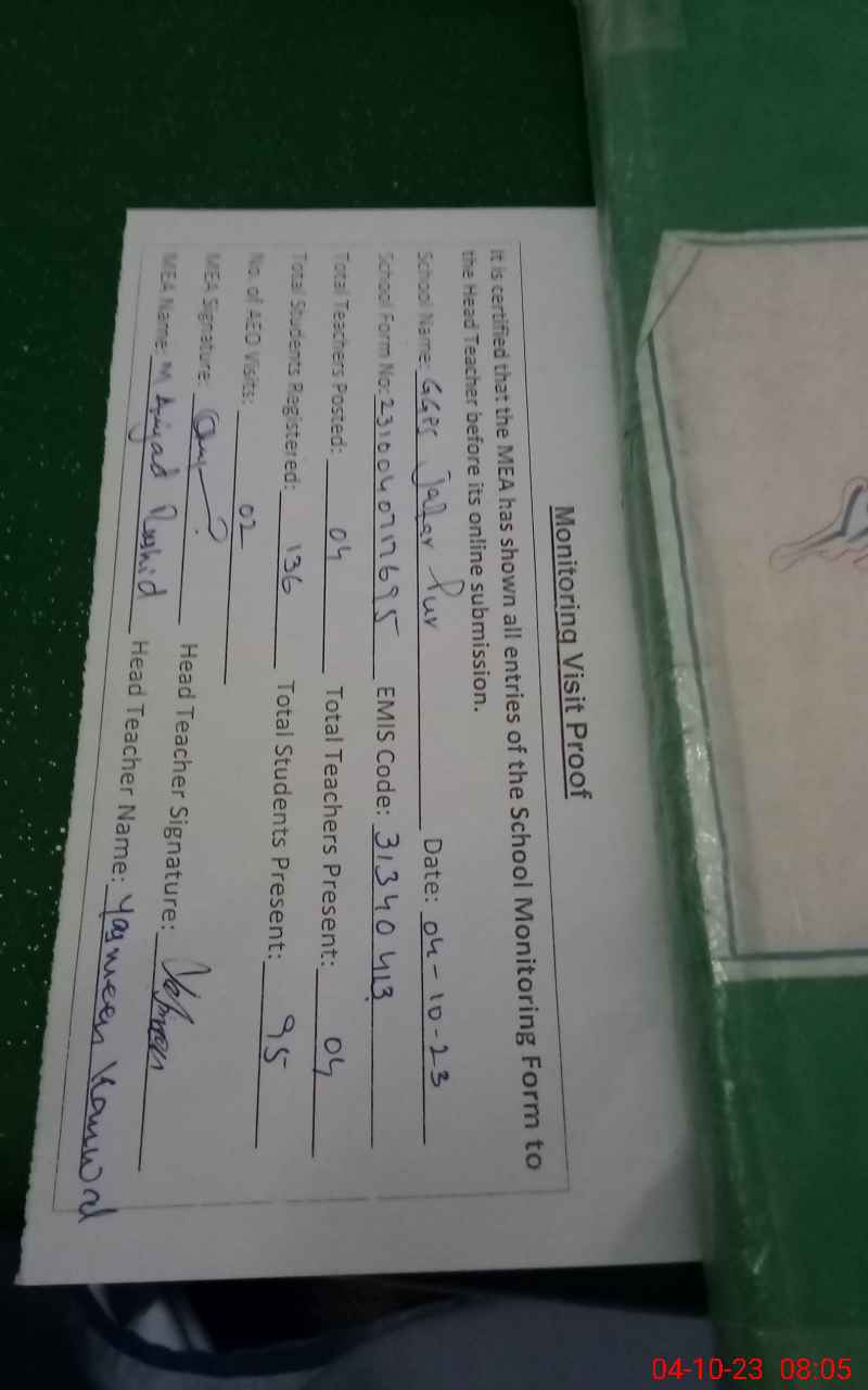 | EMIS Code: 31340413 | Name of School: GGPS JAFAR PUR | |||