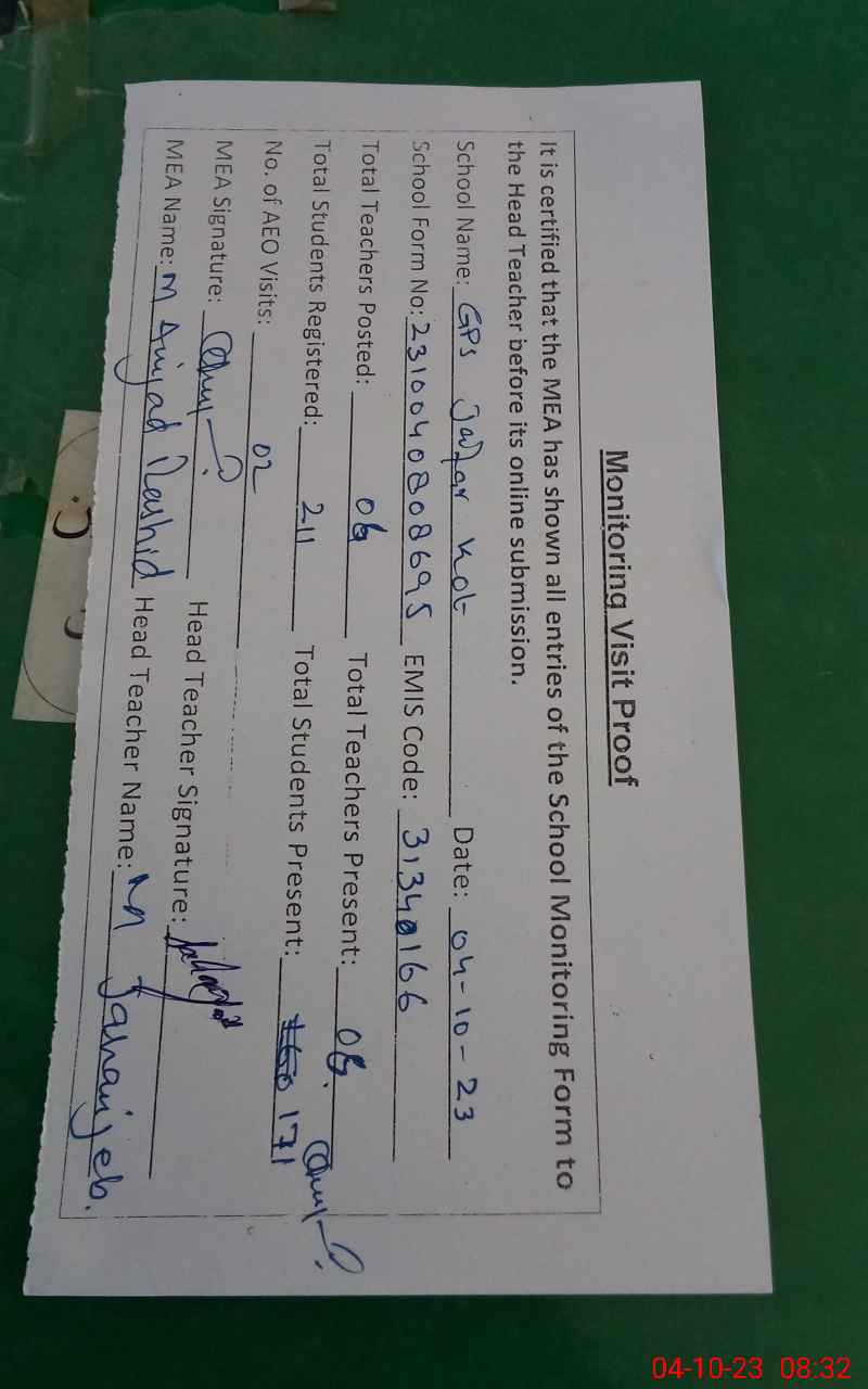 | EMIS Code: 31340166 | Name of School: GPS JAFAR KOT | |||