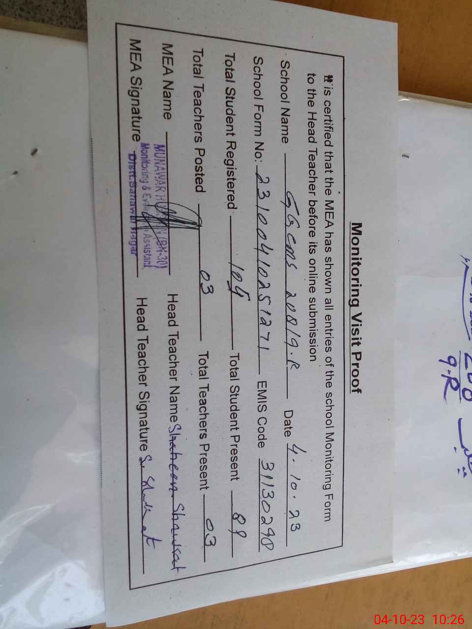 | EMIS Code: 31130298 | Name of School: GGCMS CHAK NO. 208/9-R AZAFI BASTI | |||