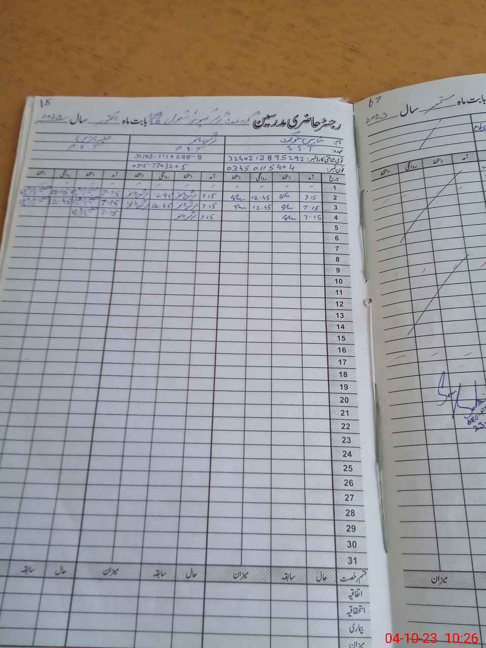 | Name: SH**** SH**** Designation: (School Headmaster's/Headmistress's) SST G Phone/Cell Number: 03**** |