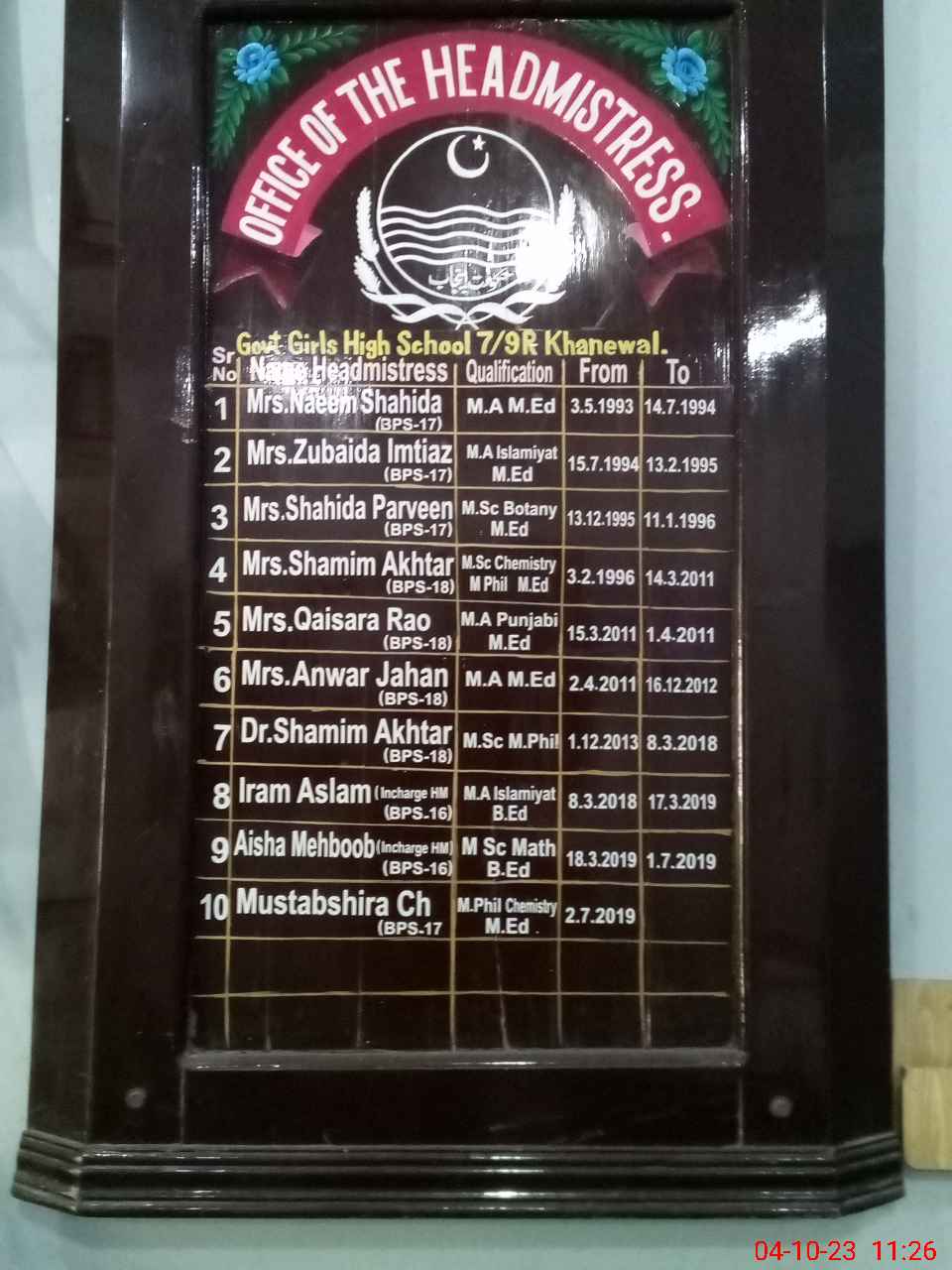 | EMIS Code: 36420053 | Name of School: GGHS 7/9-R, KACHA KHUH | |||