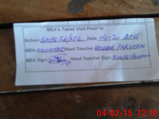 | Attendance Register | Head Teacher | MEA with School | Visit Proof |