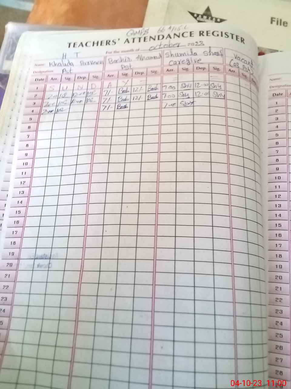 | Name: Kh**** Pa**** Designation: (School Headmaster's/Headmistress's) PST Phone/Cell Number: 03**** |