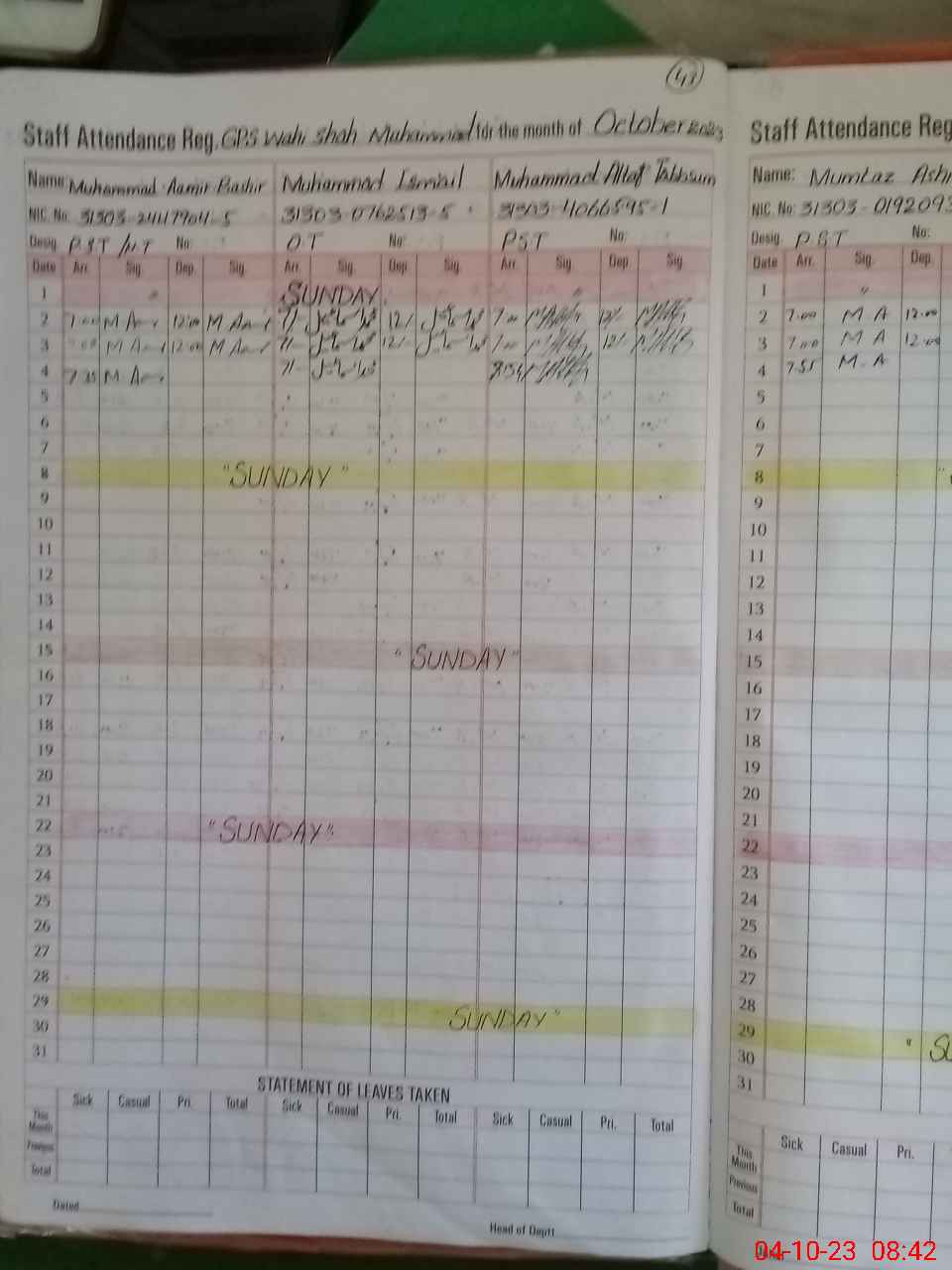 | 31**** | Mu**** Al**** Ta**** | 1 | 0 | 0 | 0 | 0 | 0 | 0 | 0 | 0 | 0 | Absent (Un-Authorized) | |