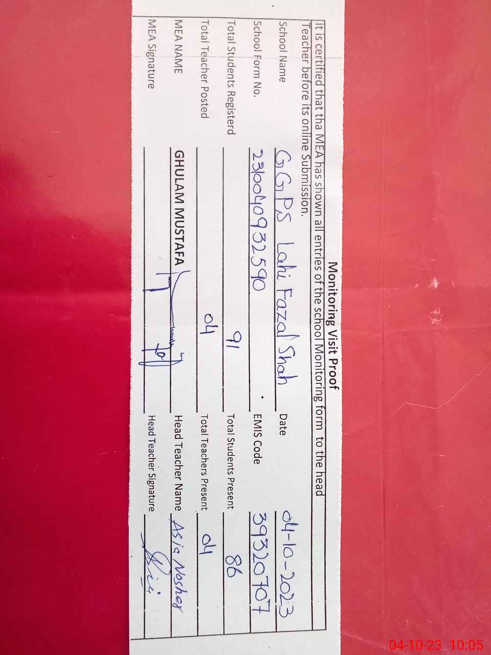 | EMIS Code: 39320707 | Name of School: GGPS LAHI FAZAL SHAH | |||