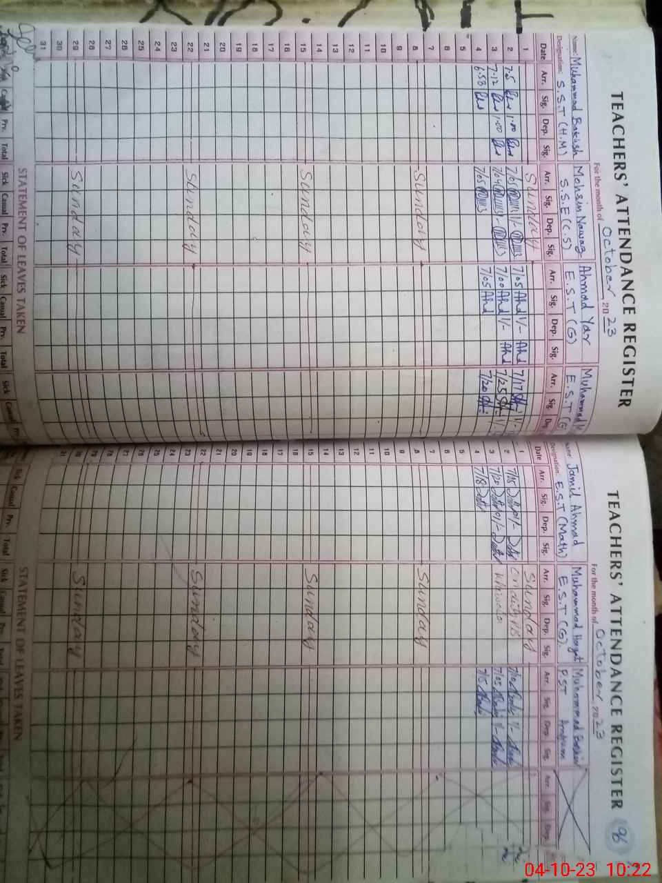 | Name: MU**** BA**** Designation: (School Headmaster's/Headmistress's) S.S.T. (Arts) Phone/Cell Number: 03**** |